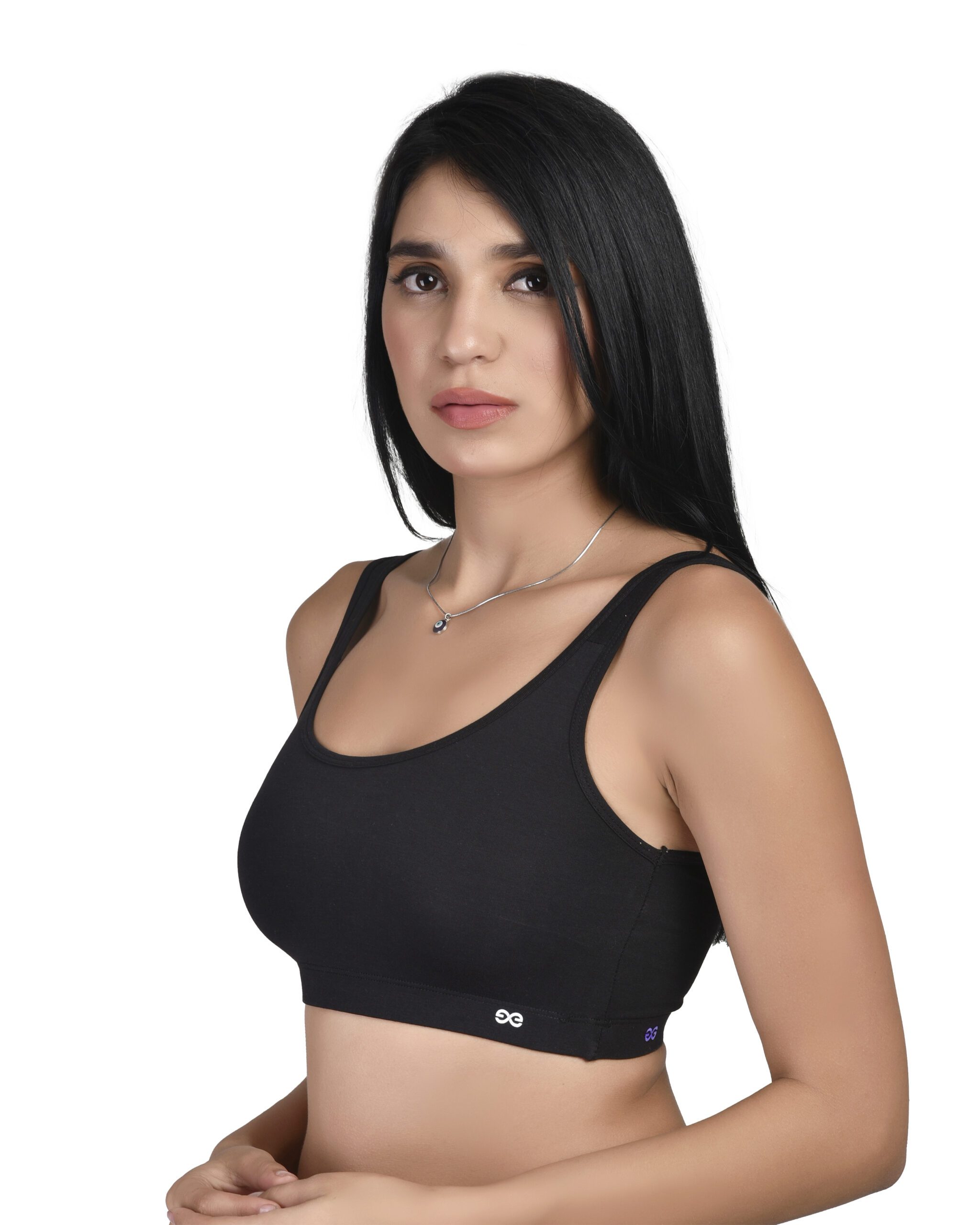 Crafted from soft, breathable cotton sport bra long fabric, it delivers a brand feels premium comfort bra experience. The flexible sports bra structure with stretchable elastic ensures a snug yet breathable fit, making it a reliable sports bra for women elastic. Designed as a bra non-padded sports long, it provides natural shape with lightweight comfort.